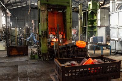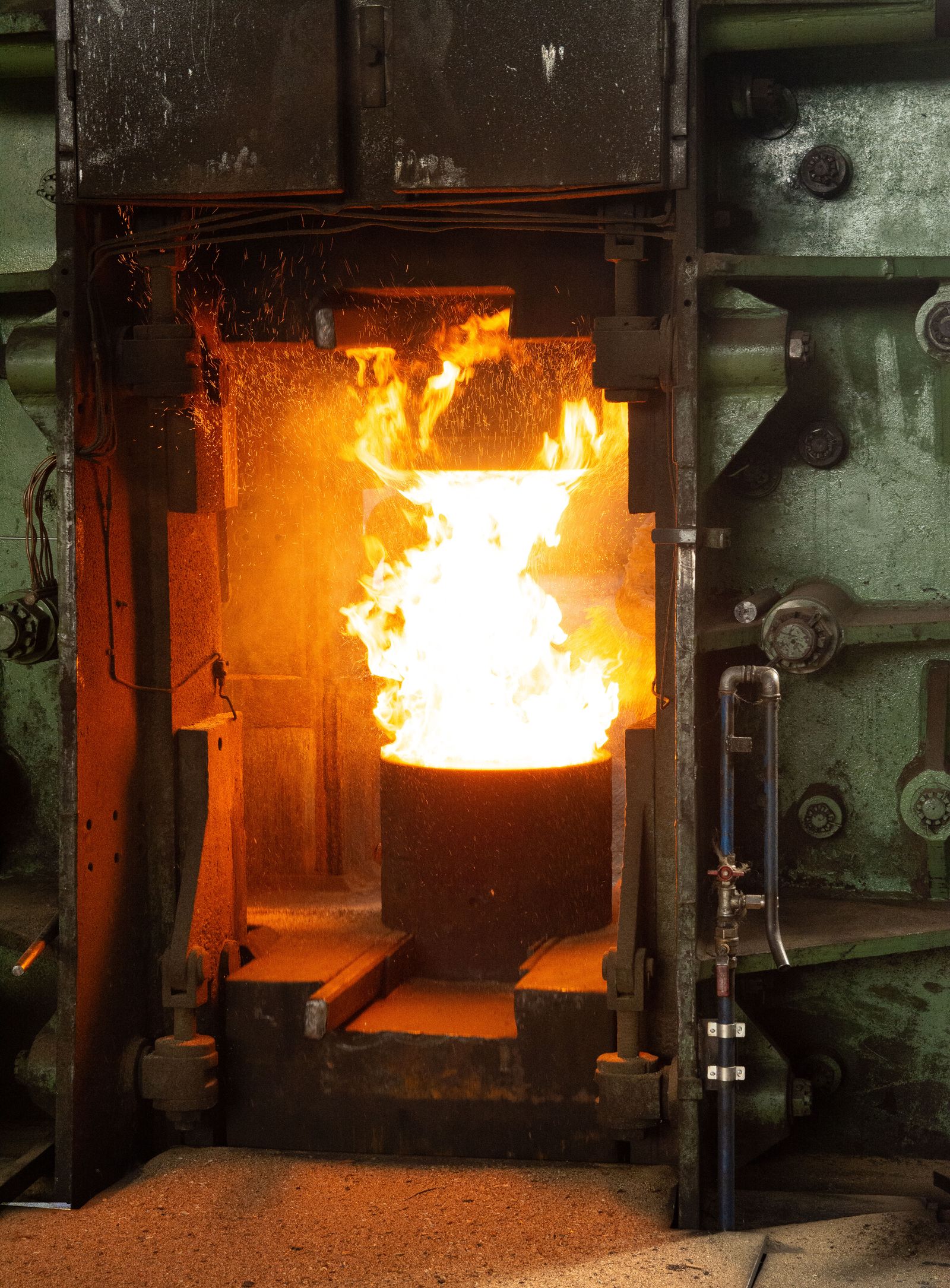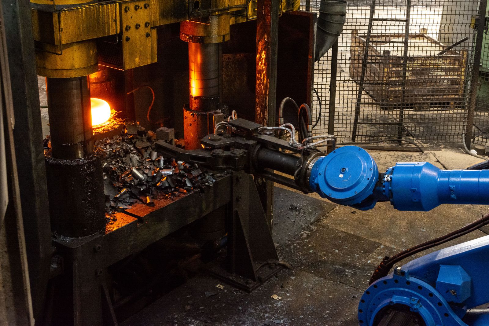 L’attività produttiva di stampaggio acciaio a caldo è suddivisa, a seconda delle tipologie, tra le linee di produzione: pressa (4.000 tons), bilanciere (300 tons) e maglio (25.000 kg/m). Il range di produzione va da 4 Kg a 110 kg.